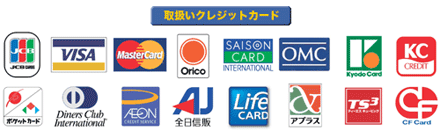 【取扱カード】 取り扱いカードは以下のとおりです。 すべてのカード会社で、一括払いが可能となっております。
